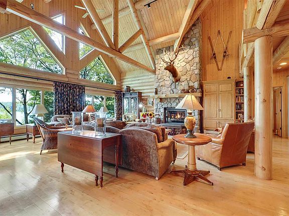 Tucked away along the glimmering blue waters of Walloon Lake's west arm is this classic up north log home that sits on 125 feet of prime lake frontage, has a coveted Lake Grove Road address, features a southern exposure and has just over an acre of mature trees gracing its grounds. The towering trees and surrounding landscape of the home create a sense of privacy and serenity that is becoming harder to find on Walloon. The nearly 5000 square foot home has a sturdy presence and was hand crafted using only the finest logs and timbers shipped directly from Idaho. The inviting front covered porch welcomes you home and as you cross the threshold you're greeted by the dramatic cut field-stone fireplace that warms the great room. With its soaring ceilings, timber-beams, and a wall of windows that frame the beautiful azure blue waters and bright blue skies of Walloon Lake this room is bound to stir a great sense of belonging. An oversized kitchen makes entertaining a breeze with it's large sub-zero fridge, double ovens and spacious island. The lakeside dining room serves as the perfect setting for unforgettable home cooked meals. The main floor master suite makes for easy one level living while the homes four additional bedrooms offer plenty of room for visiting family and friends. Speaking of family and friends, the cozy three season screened-in-porch, the lakeside tree house and fire pit are the perfect place to contemplate all of Walloon's beauty while taking in the stunning sunsets and sunrises that only this southern facing home can provide. The heated, two-car garage is connected to the home via a large mudroom that has plenty of room to drop all of your summer and winter gear. The finished walkout lower level is something to see with its dramatic high ceilings, home office, storage and more! Only a short drive to the charming town of Petoskey and its boutique shopping, fine dining and quality health care. Come find out why this Walloon home has it all!