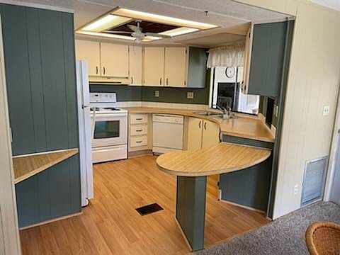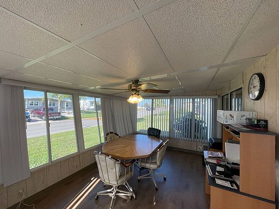 4020 Laurel Way, Ellenton FL. 34222 Colony Cove 55+ Community ~ Pet friendly North/Lakes Section not far from the Harmony Hall Pool and Sports Complex. This home is on a rented/leased lot. The home comes mostly furnished/turnkey...just unpack your suitcase and start enjoying your new Florida lifestyle! There is a screened/vinyl lanai on the carport with an entrance into the open kitchen, dining and living room area. There is a sliding glass door to the enclosed side set 10 x 12 enclosed porch/lanai. It is a great place for morning coffee or an afternoon siesta with sunset views! The kitchen has fresh paint, vinyl floors, numerous cabinets, a pantry, plenty of counter space and an eat-in bar/buffet for casual dining. The formal dining area has carpet and a built in hutch for extra storage or to display your treasured items. The living area has carpet, natural panel walls and a ceiling fan. The master suite has carpet, panel walls, a ceiling fan and a master bath ensuite. There is an attached master bath ensuite with vinyl flooring, a single sink vanity and walk in shower. The guest bedroom has carpet, panel walls, a ceiling fan and a walk in closet. The guest bathroom in the has has a single sink vanity and a shower/tub combination. There is a on the carport lanai for storage and it houses the washer and dryer. The lot rent of $1,116.23 includes water, sewer, trash, lawn and all the community amenities outlined below. Colony Cove has been named 'Best Retirement Community' six years in a row by the Herald-Tribune of Bradenton. Colony Cove 55+ retirement mobile home community has a wealth of amenities designed to keep up with your active lifestyle. Located in Ellenton, FL, just inside the Sarasota/Bradenton metro area, the Colony Cove community offers 2 fitness centers, banquet rooms, billiard hall, fishing pier, a private boat docks (fee) and and several spacious clubhouses. Great fishing opportunities, huge game rooms and well stocked libraries are also great diversions. Take a dip in one of the six heated swimming pools, or challenge your friends and neighbors to a friendly match on the pickleball, shuffleboard or tennis courts. Colony Cove also offers on-site management, laundry facilities, a woodworking shop, two fitness centers and a dog park to make your active lifestyle more enjoyable. Florida MH Sales, LLC cannot guarantee or warrant the accuracy of this information, measurements or condition of any property. Measurements are approximate. All homes are sold "as is" and personal or professional inspection is encouraged. Lot rent is set by the community and is subject to change.