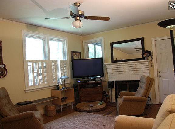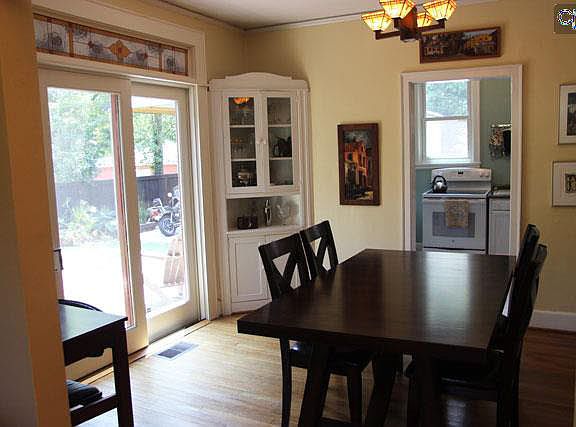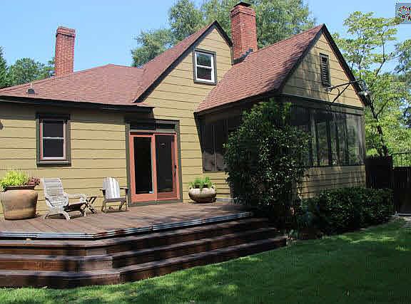 Some houses are just surprising! This home appears modest but, WOW, wait until you see the huge attic-turned-bedroom, the vintage dining room with double glass doors leading to a wrap-around deck. The beautiful backyard features a babbling waterfall, a $30,000 garage with boardwalk. There's a studio/office with AC inside the garage, a second roll-up door on the side and a garden shed tucked away behind it all. Did I mention the screened porch? The beautiful fence? The owners have just updated the kitchen with new lower cabinets, a new floor and countertops, sink and faucet. Thankfully they didn't remove the vintage glass-front cabinets! Hardwood floors, plenty of original transoms, a masonry fireplace and colorful bath with vintage tile.