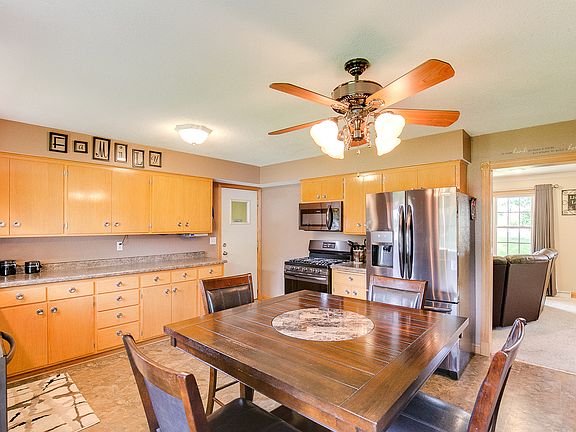 This home is beautiful and has been updated inside & out. Inside you will love the ceramic tiled floor and stainless steel appliances in the kitchen, plus the upstairs bathroom with a whirlpool tub and separate shower. The lower level is a walk out with a 2nd complete kitchen and family room with a gas burning fireplace as well as another full bathroom. Outside there is a 2 car attached garage plus 42x22 building. The windows, siding and garage door have all been updated.
