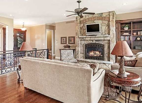 This home is a custom plan built by LEE Construction a must see starting with the custom wrought iron front door which opens into a large foyer, l0 ft. ceilings, 8 foot solid wood doors, formal dining room, wood floors throughout, OPEN FLOOR PLAN, granite counter tops, gourmet kitchen, Wolf and Sub Zero appliances, screened in covered deck off of breakfast area with stone fireplace flat screen T.V over fireplace great area to enjoy your morning coffee or evening cocktail. This home offers 3 bedrooms upstairs, 2 full baths and a powder room, beautiful stone fireplace in great room. Lower level family room with wet bar, fireplace, 4th bedroom, full bath, walk out basement pit below the screened in deck. Extra bath and 5th bedroom are framed and drywalled on lower level, large room unfinished that could be a fun media room or great exercise room. This home would be good for entertaining!!! Large 3 Car garage lots of landscaping include well & sprinkler system.