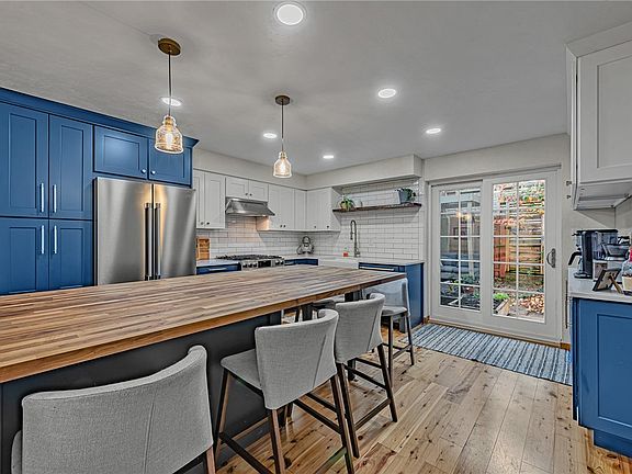 Fantastic opportunity to live in historic Bloomfield, within a short walk to Children's Hospital! Move right into this beautifully updated all brick 2 bedroom, 2 bathroom row home! As you enter, you are greeted warmly in the living room with charming hardwood floors, stone fireplace, and tons of natural light coming in through the bay window! Make your way through to the fabulous eat-in kitchen, meticulously updated from top to bottom, with navy & white cabinets, a huge ash butcher block island, coffee bar area, high end stainless steel appliances, and beautiful Australian cypress wood floors! The upstairs boasts two good sized bedrooms and a full bathroom. The beams in the main bedroom are a great addition, providing texture and a contemporary feel. The finished family room in the basement is a great place to relax and have a movie night! The back yard provides a private getaway and additional space to entertain guests. Great location! You have to see it in person to appreciate!
