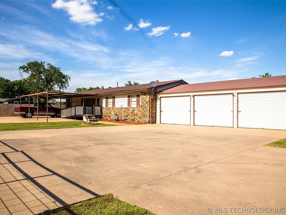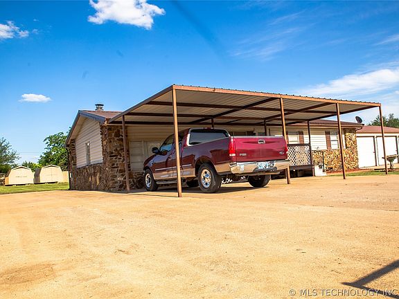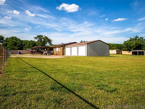 Charming ranch-style home, perfectly situated on a spacious .72-acre lot in a rural area south of Muskogee. Key features: 1404 sq/ft of living space, metal roof, 3 bedrooms, 1 1/2 baths, 2 living areas and utility room. 3 car garage and carport. Concrete patio, 2 storage buildings and open 2 stall shed. Owner laid 75 yards of concrete from driveways to patio. Don't miss out on this opportunity! Call today to schedule a viewing.