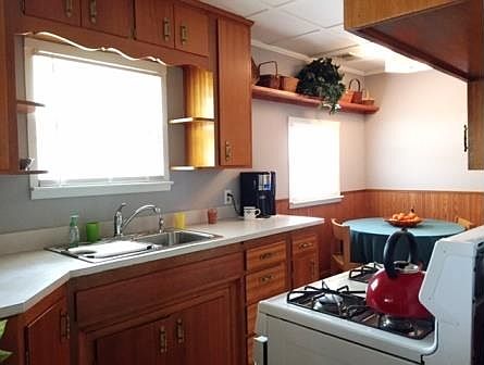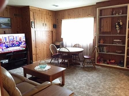 This home offers so much for $82,500 over 1500 sq. foot of living space, 2 large living spaces, eat-in-kitchen, enclosed breeze way between home and garage that makes a great space to entertain for holiday meals & parties. There is also a screen in patio, over sized double garage and a single detached garage sitting on a corner lot with garden area. Stove, refrigerator, washer & dryer included.