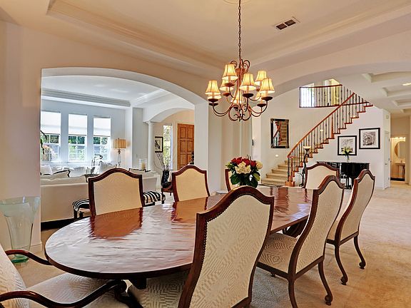 As soon as you enter this home the expansive wall of windows capturing the views of the private greenbelt lot and sun filled family room take you in. This open and expansive floor plan allows for large gatherings. Kitchen w/ granite dining bar, center island, gas cook top and double ovens opens to the covered outdoor dining patio. Master retreat with double sided fireplace and sitting area up. Den or 5th bedroom on the main floor with full bath. Park like backyard with lush mature landscaping.