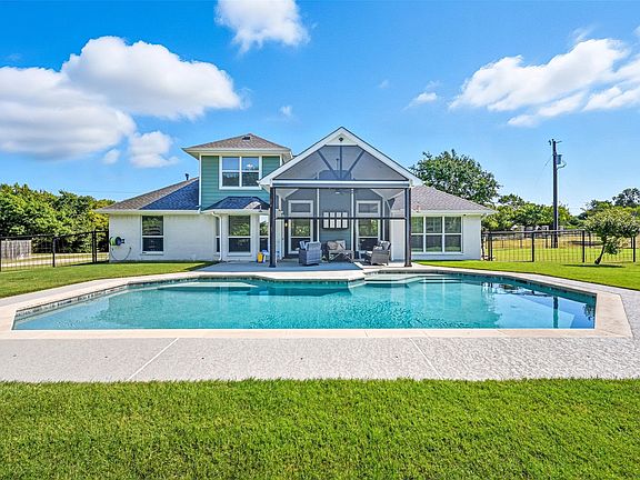 Set on a full 1-acre homesite with a sparkling pool, this 4 bed, 3 full bath, 2 car garage plus downstairs office floorplan was taken down to the studs and completely rebuilt in 2022, transforming it into a better than new dream home. No expense was spared in the renovation, and 2 years of transferable warranty still remain for peace of mind. Step inside to the sunlit, open-concept living and kitchen with vaulted ceilings, dedicated dining room, granite counters, soft-close cabinetry, and durable luxury vinyl plank flooring. The home has been fully modernized with Cat6 wiring throughout, new double pane windows, and a 3-zone Trane HVAC system. One of the most valuable features of this home is the large first floor office with an adjacent full bath. This could easily be converted into a 5th bedroom guest suite for family members who would prefer to be downstairs. Outside, relax under the covered patio while overlooking the spacious backyard and swimming pool—perfect for family gatherings or future additions. Where else are you going to find a practically new home with a pool and that private country feel within 10 minutes of shopping and 30 minutes of the city? This one will go fast, so don't wait! Schedule your showing today.