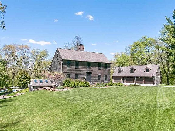 This incredible property & updated, intensely cared for saltbox home is truly a HOME RETREAT! Enjoy a quiet morning under the pergola, a relaxing evening by the outdoor fireplace, or entertain family & friends w/the patio, yard, & pool area! Inside enjoy an open dining area w/hardwood flrs & kitchen w/s/s appliance, gas stove & tile floor. Master Suite w/tile & pebble shower & dream closet w/washer & dryer! LL FR, sauna, 2nd laundry rm & sunroom walks out to path to pool. 5 car garage w/office/storage above