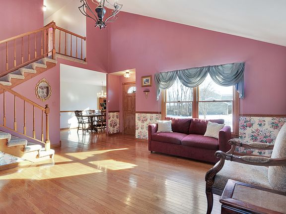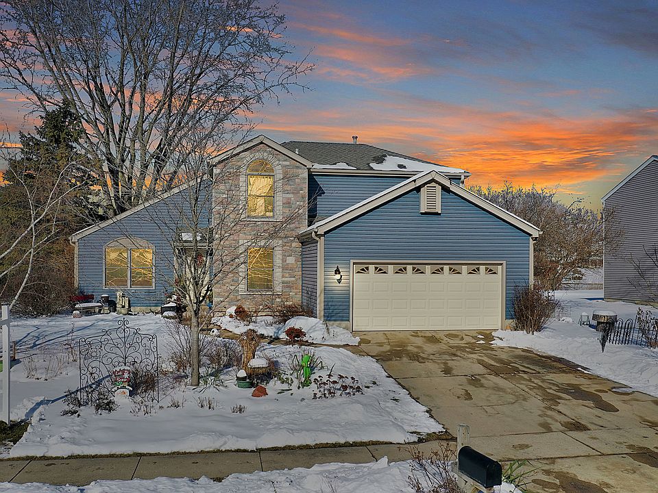 OPEN SATURDAY (2/11)*** Prime beautifully landscaped corner lot! This is truly a secluded paradise. Placed top winner in the Northwest Heralds's McHenry County Best Home Gardens of the Year! (See new summer photos included). Next to the Prairie Trail with no neighbors behind you. The exterior of the home is sure to catch your eye as it was recently embellished with a natural cultured stone front. Step inside to high ceilings and the inviting living room featuring several windows showcasing the abundance of natural sunlight. Gorgeous hardwood floors throughout the main level, with an open concept kitchen & family room layout. Solid Oak Fluted Trim, Chair Rail, & 6 Panel Raised Oak Doors throughout the home, freshly stained (2022). Three bedrooms upstairs and with an additional fourth bedroom in the basement which could also serve as an office space! Plush new carpet runs the stairs and upstairs hallway. Bright and beautiful walk in shower just remodeled with white marble like tile. Enjoy your glass of wine or cup of coffee in the backyard under the new lit up pergola! This home is truly move in ready. All stainless steal Kitchen appliances replaced in 2022. Washer & dryer (2022).