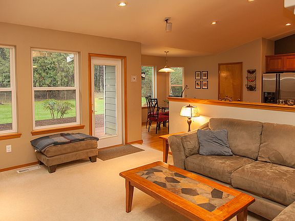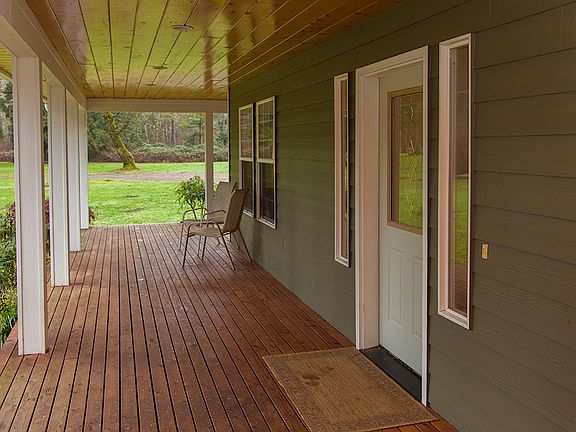 It's all here! Gorgeous property & well-constructed beautiful single level home on acreage in country setting, yet close to town, amenities, state parks & recreation. Custom designed w/open concept, slate entryway, gorgeous hardwood floors, spacious kitchen w/lots of counter space, sunny kitchen nook, skylights, huge master suite, super-efficient A/C heat pump, covered wrap around front porch & back deck, well landscaped fenced backyard with fruit, vegetable, flower & herb garden. 3 Bay shop with loft has loads of storage, work space & tons of parking inside & out. Home backs up to old growth cedar & hemlock trees, offers mountain views & wildlife to observe.