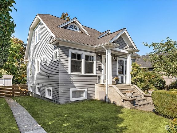 Quintessential Craftsman holding true to period details w/ modern flair. Enter to the open living room with statement gas fireplace & built-in seating; to the right, a spacious dining room ready for holiday hosting! No work needed in the updated kitchen w/plenty of counter space, gas cooktop & new fridge. Beautiful trim & hardwoods throughout evoke character & warmth. Go up the wide, impressive stairs lit by skylights to the 2nd floor w/tall ceilings, a primary bedroom featuring charming alcoves, 2nd bedroom, & remodeled 3/4 bath. The basement offers ample storage & laundry. The flat, west-facing backyard is great for entertaining. Easy commute on the WS bridge, down the street from Puget Park & minutes to Alki, Admiral & Alaska Junction!