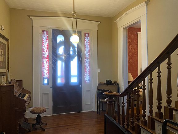 This Italianate style home built by Thomas Gibbs was built many years ago than an addition was added in the 60's. The 12' ceilings in the older part of house along with a remarkable winding stairway, several gorgeous fireplaces, living room, long windows & doors, nice trim and woodwork, true hardwood floors all completes the remarkable craftsmanship of he talented builder long ago and will certainly take you back in time with all it's beauty. The newer section of the house has a formal dining rm and a breakfast room plus a bar area in the kitchen allows plenty of room to enjoy meals. A nice large bathroom with double vanities, standup shower and a whirlpool tub plus a half bath in the laundry rm. Geothermal heat and central air on first floors and just added central heat and air second floor. Front porch and rear porch. Beautiful setting on 3.40 acres, white fencing, mature trees, blacktop driveway, one car attached garage, detached garage, old cistern (on city water now) unfinished basement, storage buildings plus a log cabin (in need of repair) gives plenty of storage options.Several fenced areas for farm animals and garden spots, property is backed up to a large farm owned by n
