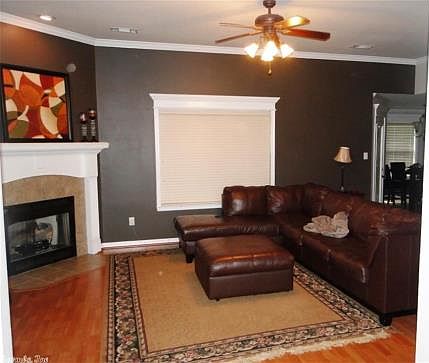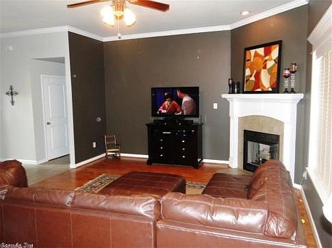 Four bedroom, two bath home in Emerald Valley. The home features large rooms with tile in the wet areas and wood laminate flooring in entry, living room and hall. Spacious eat in kitchen has beautiful stained cabinetry and breakfast bar. Split bedroom plan. Master suite has jetted tub and walk in shower. Great covered patio overlooks a fence backyard.