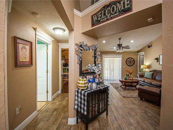 BEAUTIFULLY REMODELED AND UPDATED 3 BEDROOM, 2 BATHROOM POOL HOME IN SOUTH LAKELAND'S HATCHER ESTATES COMMUNITY. USDA ELIGIBLE FOR 100% FINANCING!! Fantastic open floor plan, split with 2 bedrooms on one side and the master suite on the other. The master suite features a large walk-in closet with custom shelving. The kitchen features granite counters, ceramic tile, stainless steel appliances, pass-through and closet pantry. The kitchen overlooks the living room that offers wood-look tile, custom built-in entertainment center and sliding doors to the lagoon pool in the screened-in lanai. This home sits on a 1/3 acre lot that is completely fenced with a fire pit and plenty of space to park all your toys. Conveniently located near highways, shopping and entertainment.
