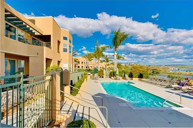 Spacious two bedroom / two bath condominium plus option for office/dining room in Carlsbad with lagoon views available for rent! Located in the gated community of Ocean Pointe, this complex feels like resort living! Condominium features an oversized kitchen with tons of cabinet space, a formal dining room and a large family room. Unit includes a front loading washer / dryer and fridge, and has plantation shutters throughout. The oversize master suite features two closets and a separate shower and soaking tub. Two underground assigned parking spots and a private storage locker compliment the many amenities that Ocean Pointe has to offer (swimming pool, open space, jacuzzis, etc).