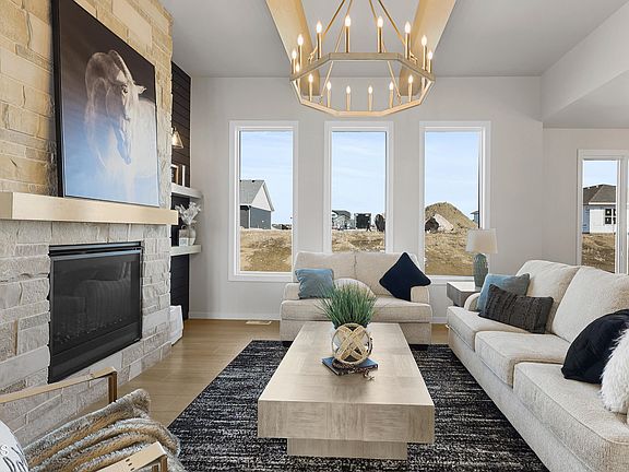 Stunning 3-Bedroom Patio Home located in Promontory Point in NW Bismarck! Welcome to this beautifully designed 2,212 sq. ft. patio home, offering a seamless blend of elegance and functionality. Step inside to a grand entryway with soaring 15' ceilings, leading into a spacious open-concept living area with an extra family room, wet bar, and a covered patio—perfect for entertaining! The chef's kitchen boasts quartz countertops, a double oven, and a large walk-in pantry, while the gas fireplace with a custom wall detail creates a cozy atmosphere. The primary suite is a true retreat, featuring a soaker tub, tiled shower, and a generous walk-in closet. Additional highlights include: