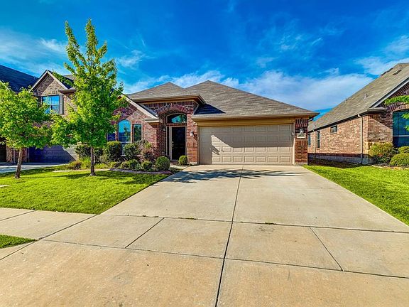 Spacious 4 bedroom home located in the highly sought after Ranches East neighborhood in Northwest ISD. The large kitchen features stainless steel appliances, double oven and granite countertops with large bar stool eating area. Master suite features a garden tub & separate shower. Enjoy your evenings on the extended covered patio. This is a must see home with tons to offer and shows true pride of ownership and will not disappoint.