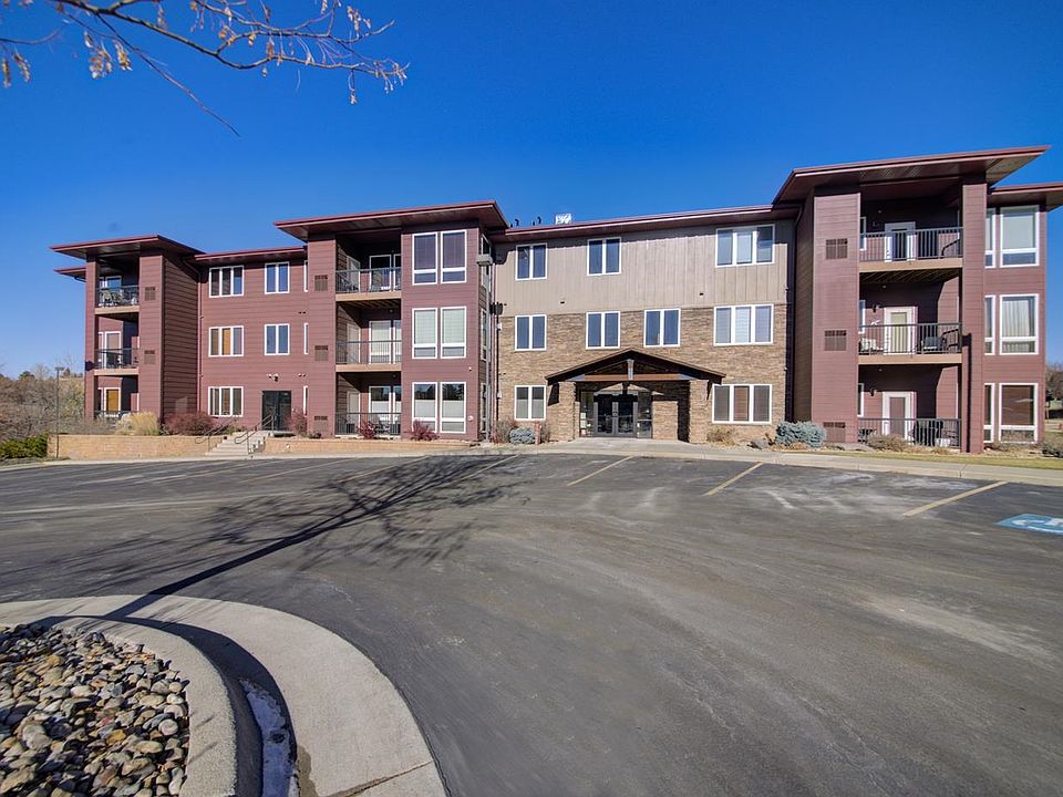 Listed by Lisa Dorsey 605-390-8539 RE/MAX Results. One of the best units in Vista Park. Top Floor, one owner center unit over looking Fountain, Club house, golf course and hills. Wonderful floor to ceiling windows in living room and cozy fireplace. Balcony to enjoy warm summer evenings while you take in the views. Large Master suite with double vanity and walk in closet. Nice split floor plan with 2nd bedroom and bathroom on other side of living room and kitchen. This unit also has a flex room that could be used as an office or formal dining room. Larger laundry room that includes stacked washer/dryer, has extra space for storage. Newer stainless steel applicances, double oven in Kitchen. Included with unit are 2 parking spaces in Heated Garage, no more shoveling! Condo amenities include safe secure access, club house, pool, play ground, and walking paths. Association fees includes Water, Basic Cable, Garbage, Exterior maintenance and insurance. Lawn, pool care and snow removal. All furnishings in Condo are negotiable. All measurements are approximate. Buyer and Buyer's agent to confirm all information, including any updates to Condo Covs and By Laws. Seller states that Hardwood Floors in condo may or may not be grandfathered in.