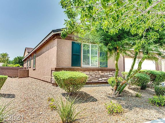 Great 1-story in central North Las Vegas location! This 4-BR/3-Bath home is laid out so nicely w 3 secondary BRs to the front and Master Bedroom separate to the back. Great sized kitchen features lots of cabinets, center-island breakfast bar, granite counters & stone tile backsplash, SS appliances including gas cooktop, double built-in ovens and beautiful French door refrigerator, along w large walk-in pantry & easy-care tile flooring. Open floorplan attaches to Dining Area and large Family Room w slider out to the park-like backyard. Spacious Master Bedroom w ceiling fan & carpet flow into the Master Bath w dual sinks, lots of cabinet & drawer space, separate tub/shower and a LARGE walk-in Closet! Three secondary bedrooms all have ceiling fans and carpet .... one with its own shower bath. Step out onto the pavered covered patio and enjoy the park-like desert landscape w fruit trees and a spot of synthetic grass to tie the color scheme together. Zero lot side yard has lots of options!