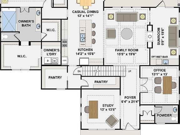 Discover the perfect blend of elegance and comfort in this brand-new home, set on a half-acre in the sought-after lakefront community of Eastwind Cove. Designed with soaring 10-foot ceilings on the main level and 9-foot ceilings upstairs, this residence offers an open, light-filled floor plan ideal for modern living. The gourmet kitchen is a showstopper, featuring floor-to-ceiling cabinetry, quartz countertops, double wall oven, under-counter microwave, and an oversized island that flows seamlessly into the family room with coffered ceilings and a two-way fireplace shared with the sunroom. A casual dining area with quartz serving station makes entertaining effortless. The luxurious main-level primary suite boasts tray ceilings, three walk-in closets, spa-inspired bath with double vanities, a large walk-in shower, and private laundry. Additional highlights include a private office and versatile study/formal dining room. Upstairs, a spacious loft anchors three bedrooms—one connected to full bath and two sharing a Jack & Jill—plus the large primary laundry room. The partially finished basement expands your lifestyle with 1,172 finished sq ft that features a recreation room, full bath, and wet bar with mini-fridge, along with 530 square feet of unfinished space for future customization. Community amenities include a pool, boat storage, and close proximity to lake access points. This home offers the perfect combination of luxury finishes, functional design, and a premier lakefront setting. Photos/videos are renderings and representative photos of previously built similar home. Options, colors, layouts, etc in photos/MLS may differ and photos may show items not scheduled for this property. Please verify all options, colors, etc. with builder representative.