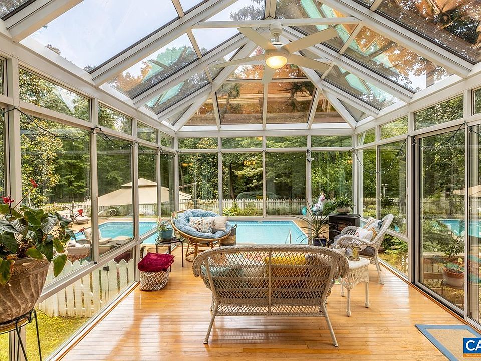 Welcome to your dream home! The OPEN CONCEPT main level is highlighted by GRANITE COUNTERTOPS, oak cabinets, a floor to ceiling STONE FIREPLACE and ABUNDANT NATURAL LIGHT. Nestled on over 2 acres of lush, picturesque land, this magnificent property offers a SERENE RETREAT while still being conveniently located within reach of the vibrant amenities of Charlottesville. Boasting 4 bedrooms, 2.5 baths, and an array of delightful features, this home is the epitome of comfort, style, and functionality. It features a fenced patio & pool, INCREDIBLE SUNROOM, trails, FENCED GARDEN SPACE, and a large deck. The Kitchen has ample counter space, custom hood over cooktop, a wall oven & microwave, and stainless steel appliances throughout. The second story offers a Master Bedroom, Walk-in Closet and upgraded Bathroom with walk-in Shower with glass door. Plus, with a two-car garage and a separate SHED with electricity & cold water, this home offers a luxurious and practical lifestyle. Less than 10 min to Hydraulic Rd and only 7 min to the Airport.
