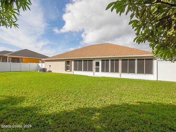Very well kept 3 bed 2 bath home with a large lot and tropical fruit trees. It is located in a serene neighborhood yet has easy access to I-95, shopping and restaurants. Great location, close to schools and a short drive from the beach. The original owners have maintained and updated this property: in 2016 they installed a PVC fence with a gate; in 2017 they replaced the roof, painted the house, and added hurricane shutters on all windows and doors; in 2019 they replaced the air conditioner with a new unit; and in 2023 they had the septic tank serviced. The home features tile throughout, an alarm system/smoke detector/home security system, sprinkler system, a shade screen for the garage, and a patio terrace with sliding windows/screens.