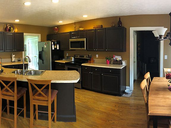 This is a BEAUTIFUL ranch home on 1.06 acre with a huge finished walkout basement with 8' 8'' ceilings!! It is in an AWESOME location in Oldham county within one mile of schools. This home features 4 bedrooms and 3 full baths, great room with cathedral ceiling and impressive stone, wood burning fireplace, large eat in kitchen with bar area and formal dining room with a huge pantry. It has a VERY spacious split bedroom layout on the main floor with a secluded master suite including a large Jacuzzi tub and walk in closet. There is a large deck off the main level with an additional patio and deck below. There is extensive hardwood flooring with vaulted and tray ceilings throughout the main floor. The finished basement has an office, large living/media/game room, gas fireplace and full bedroom and bath wit plenty of storage plus a utility garage. There is a laundry on the first floor, 2+ car garage with 400 sq ft of attic above garage, great backyard with an abundance of wide open space to enjoy outdoor activities. The finished basement features an office/study, large living/game room, gas fireplace and full bedroom suite with large walk-in closet. New furnace (4 years) and new air conditioner (one year). Dog-friendly partially fenced backyard. THIS IS A MUST SEE!!!