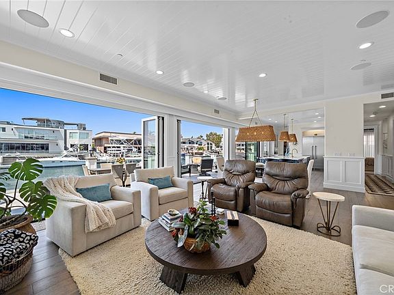 Exceptional waterfront residence custom built in 2019. Prime location with 98 feet on the water and private 86-foot boat dock. Truly a one-of-a-kind masterpiece with quality appointments and custom features throughout the home. As you approach the property you are greeted by the stunning architecture and excellent craftmanship of the home. The grand foyer leads you straight into the great room. Wide water views sweep across the entire back of the home which features tri fold panel doors. The kitchen is absolutely stunning with a massive honed marble center island. Custom milled hardwood cabinetry and high end Thermador appliances. There is a walk in pantry and butlers bar and sink that complete the space. Oversized downstairs bedroom with En suite bath could easily be a second primary suite. Conveniently located downstairs is an office, or den that looks out to the pretty garden view. The deck area is expansive and is thoughtfully designed for maximum enjoyment whether you are entertaining or simply relaxing with the beautiful view. Sparkling spa with multiple water features and an outdoor fireplace. As you ascend the grand staircase to the second level you will find the sumptuous primary suite complete with large sitting area, inviting fireplace and a private waterfront deck. The spa inspired primary bath is absolutely gorgeous. Deep soaking tub, spacious steam shower and multiple vanity areas. The walk-in closet is a true delight with a dressing area and multiple built in storage areas. Two additional bedrooms are on the second level, one has an En suite bath. The third level of the residence takes you to a waterfront patio that affords additional space for outdoor enjoyment. Come and live the California Coastal lifestyle that Huntington Harbour has to offer!