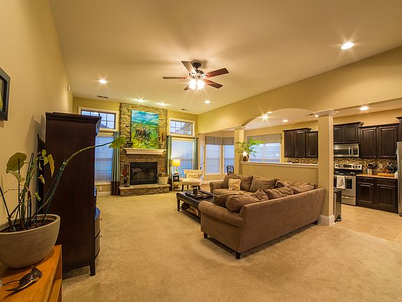 This well-maintained ranch on a quiet street is the home for you! 3 beds, 2 baths. Master bath has double sink vanity, separate soaking tub and shower, and a large walk-in closet. Formal dining room with crown molding and tray ceiling opens into great room. The great room has a 10-foot ceiling, and features a floor-to-ceiling stone fireplace (wood burning). The kitchen and butler's pantry have extended height, espresso cabinets and quartz countertops. Laundry room contains built-in cabinets with folding counter. 2-car garage is extended depth and is fully insulated. Completely fenced in backyard with 6-foot privacy fencing. Realtors welcome.