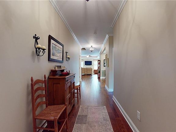 Stunning home! Open floor plan, beautifully appointed w/ crown molding, coffered ceilings in D/R, engineered h/w floors, top of the line s/s kitchen appls, gas stove, granite counter tops & island that opens up to the living room, 2 primary bedrooms, one on main level & other upstairs, both have en-suite baths & huge walk in closets. Rear deck overlooks beautifully manicured landscaped yard. 5' crawl space, fully lined with vapor barrier. HOA covers roof, & all yard maintenance. Builder warranty.