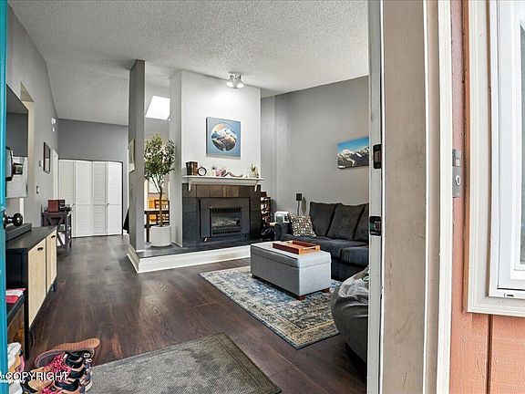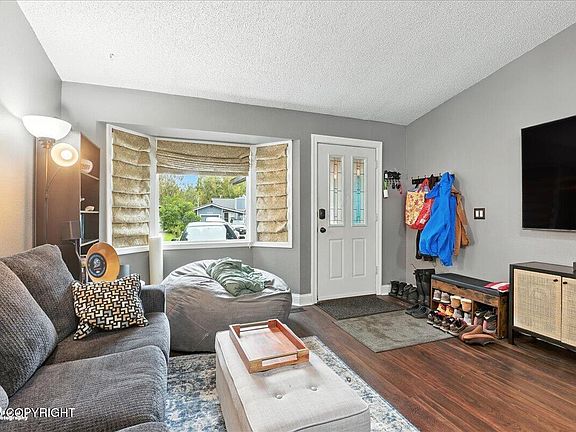Darling ranch in Chugach Foothills! Fully fenced yard & large deck, vaulted ceilings w/skylights, cozy gas FP, newer LVP, windows, furnace & roof. Kitchen w/gas stove, pantry & deck access. Primary suite w/barn door bath, hall laundry w/shelving. Close to trails, parks, shopping & military base!