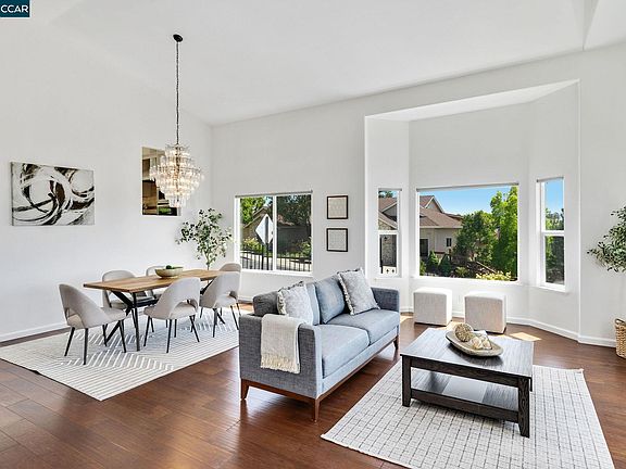 Welcome to this hillside oasis in the highly sought-after Lime Ridge neighborhood! Beyond a gated entry, this home offers panoramic views of Mount Diablo, Downtown Concord, and Lime Ridge trails. Located one mile from De La Salle and Carondelet High Schools, the home is in an area with top-rated schools and is a block from a private swim academy. The 2,290 sq. ft. property features 4 bedrooms, 2 bathrooms, and a 1/3 acre lot. Natural light fills the home through abundant windows, complemented by vaulted ceilings. Recently updated, it blends opulence, artistry, and functional elegance. Ideal for gatherings, the spacious living and dining rooms connect to an open kitchen and family room with extensive cabinetry, a large island with stone countertops, and access to a stunning backyard with a lawn and hot tub area.The primary bedroom includes a slider to the backyard, a walk-in closet, and an updated bathroom. Additional highlights are a generous laundry room, and two main level entrances with coded doors for added security to the existing home security system and a drought efficient water system. Pre-approved county plans for an ADU add further versatility. Rhoda Way offers an unparalleled living experience. Don’t miss out on this gorgeous home!