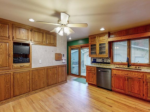 Tons of room in this 4-bedroom ranch! Good-sized kitchen shows well with granite tops and newer refrigerator/dishwasher; hardwood flooring runs through living room and down the hall. 3 main-floor bedrooms are newly painted; full bath has both walk-in shower and separate tub. Fourth bedroom and additional bath in lower level along with basement family room with fireplace! Amazing fenced backyard has large deck and patio, while detached garage is huge, at over 800 square feet!
