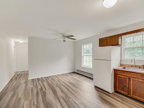 Beautiful bright upper unit two bedroom one bath home available for rent. This home is part of a duplex and only the upstairs is offered at this time. Enter through the front door and the stairway leads to a freshly painted home with beautiful new gray plank flooring throughout that looks like recycled barnwood. Daylight washes through the kitchen which is complete with ample oak cabinetry, a large refrigerator, and electric stove and faces a spacious dining area which can easily accommodate a table for six. Step into the living room and there is a wall of windows, a large closet with laundry hook-up and water heater for the unit, and plenty of space. The living room has brand new floors and fresh paint as well. Two large bedrooms are found down the hall adjacent to the recently updated bath with new vanity, floors, and paint. Set on a large 1.6 acre lot, there is plenty of space outside to grill, unwind, and throw a football if you're so inclined. Parking is shared but there is easily space for each unit to have two cars. Electric is paid by the tenant. Water is public and will be reimbursed to the owner. Pets allowed on a case by case basis. Sorry, no cats. Security deposit is $1450. Minimum one year lease required. Pets on a case by case basis. No cats. One year lease minimum required. Owner prefers a two year lease. Tenant pays electric, half water, and half lawn/snow removal.