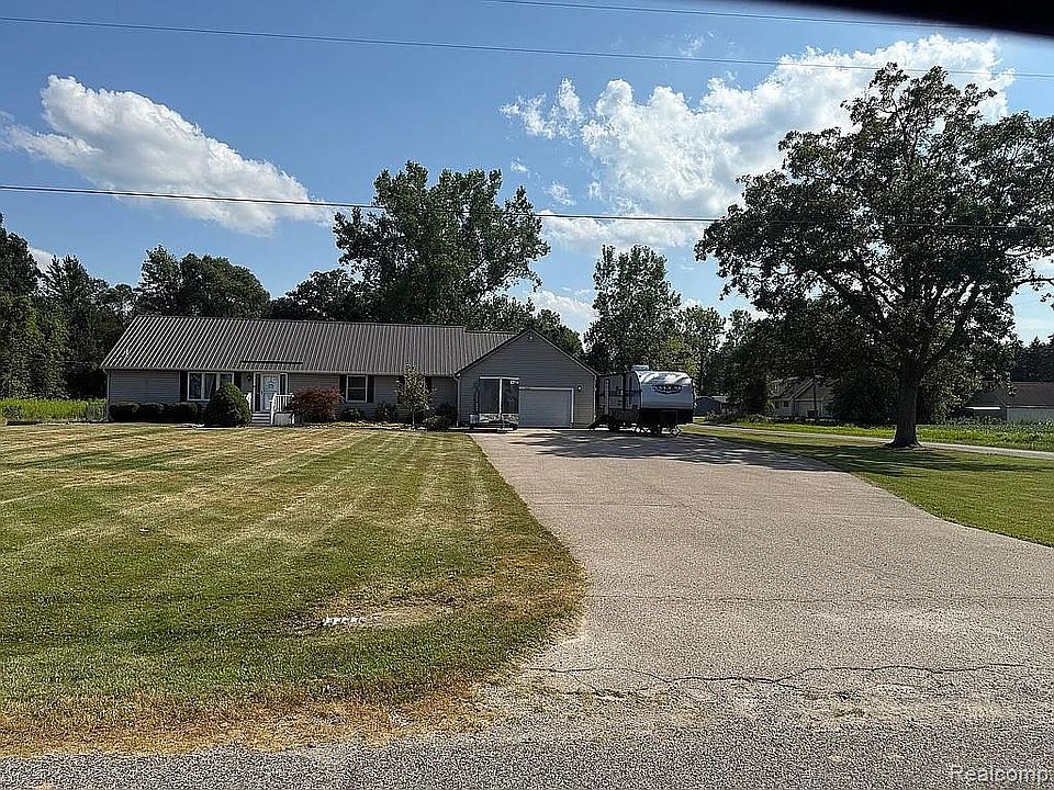 This beautiful split bedroom floor plan ranch on one acre in the countryside of Birch Run. Birch Run schools with city water and septic. Find yourself in the newly renovated laundry room with custom cupboards and tons of storage! The main bath and 2 spare rooms welcome you from the garage as you move into the spacious kitchen/dining room/ living area. This open concept space is amazing for entertaining when you consider the expansive deck welcoming you to a huge 18X33 pool! New liner and pool filter sand in 2025. Primary suite has a spacious ensuite. Full basement with 2 bedrooms walled in with a shared closet and an egress. Just waiting for you to install carpet to finish off the 4th & 5th bedrooms. The basement also boasts a gas fireplace and half bar with accessible cable for a TV. Many other updates with a blown insulation in the attic in 2018 as well as a new metal roof in 2019. Govee permanent lights on the front of home 2024. New TRex front and back patio in 2022, 2.5 car heated garage (heat added 2022) and a new sump pump in 2024. Fenced back yard with fruit trees in the front and backyard. Dishwasher, stove/oven & refrigerator included. A washer and dryer will remain. Deer frequently pass through the front yard at night and often see deer, wild turkey, pheasant and other wildlife daily in the farm fields that surround. Just a short drive to Birch Run shopping and Frankenmuth festivities!