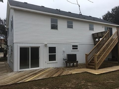 Excellent floor plan on this newly refurbished beach home. Upstairs has three bedrooms and two bathrooms, with an open LR/DR/Kitchen. Downstairs has a huge entertaining room or perhaps in-law quarters, a large bath with Jacuzzi, washer/dryer room, and a large garage/shop. Listing agent believes this property is located in the highly desirable "X" flood zone. The quiet, end of Cul-de-sac location offers peace and privacy; yet is very convenient to access the beach and shopping. Extras include hardwood floors/tile throughout, guttering and downspouts, electric garage door opener, nice decks, spacious closets, attic access with stairs, and new storm doors. There was previously an irrigation system throughout that was removed during the remodel. The well and some of the sprinklers and piping remain.