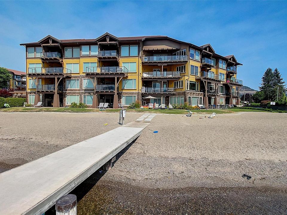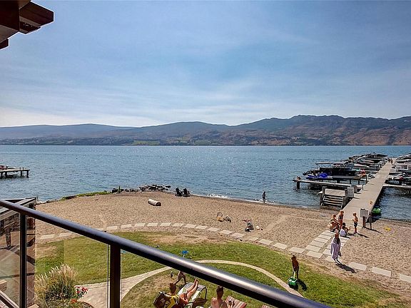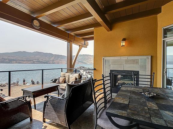 Corner unit at Barona Beach Resort. Stunning unobstructed views of Okanagan Lake. One level living w/1821 sq ft, 3 bedrms 3 baths & amazing views of the LAKE & mountains. Den can be 4th bdrm. Spacious covered deck w/2 way gas fireplace to enjoy the ambiance of the summer evenings. A 2nd covered deck off the den/office. Open design great room, dining & kitchen w/spectacular views. Ample wood cabinetry, island kitchen, granite counters, stainless appliances, gas stove. Positioned perfectly to transition the dining experience outdoors. Great room flooded in natural light. Modified "Lucca 2" plan. Master bdrm w/captivating views of the lake & city lights, ensuite finished in tile & granite. 2 additional bdrms, one w\ensuite bath. One secure parking. Landscaped grounds, sandy beach, pool & hot tub. Minutes to golf courses, award-winning wineries & shops of West Kelowna. List price does not include boat slip & lift - can be purchased separate. Pontoon boat can also be purchased separate.