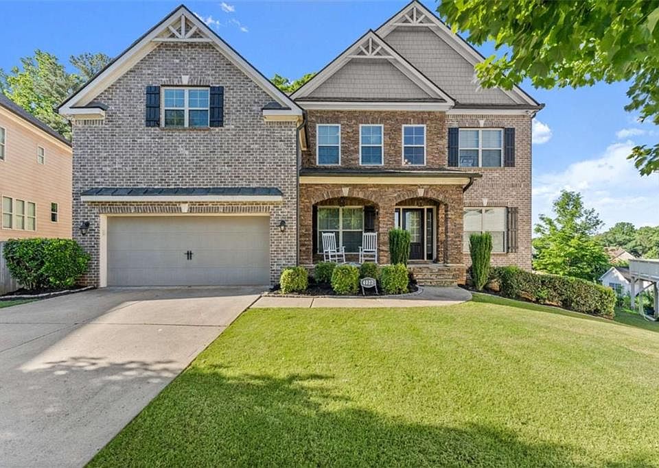 From the curb appeal of a classic rocking chair front porch to the beautifully constructed brick home, 4022 Roberts Crest Dr makes quite the first impression. As you enter in to the 2-story foyer, hardwood floors and stately trimmed columns open into the formal dining room. To the right, french doors lead into a carpeted office with a well-lit view of the front yard. The main level also has a guest room and a tiled full bathroom with a custom storage cabinet. The butler's pantry off the dining room leads into the gourmet chef's kitchen; the perfect place to gather around the oversized granite kitchen island. If ss appliances, a large pantry, recessed lighting, a window-lined eat-in breakfast area, and views to the living room are on your must have list, you will not be disappointed! The living room features a stack stone fireplace, recessed lighting, and floor to ceiling windows with views of the back deck and private backyard. The primary bedroom upstairs provides ample room for furniture and a seating area accented with a double trey ceiling. Attached is the primary bathroom with separate sinks, a separate tiled shower and soaking tub, and an extra vanity to make getting ready a breeze. The best part? An absolutely jaw-dropping primary closet! So much storage and hanging space with a window to allow natural light in as you dress your best. The laundry room and theater style bonus room are just down the hall. Two bedrooms are connected with a jack n jill style bathroom, but each have their own sink and closet to keep mornings running smoothly. An additional bedroom upstairs has a private ensuite bathroom all the kids will want to claim first. The unfinished, stubbed basement awaits your additional needs! The whole house is wired with Cat5 cables to ensure you stay connected. The backyard is fully fenced with a playground and plenty of room for pets and kids to play safely! Come for the highly sought after North Gwinnett school system, stay for the convenient proximity to parks, community activities, Suwanee Town Center, restaurants and shopping, Peachtree Industrial Blvd, and I-85 and the very well built home that is 4022 Roberts Crest Dr.