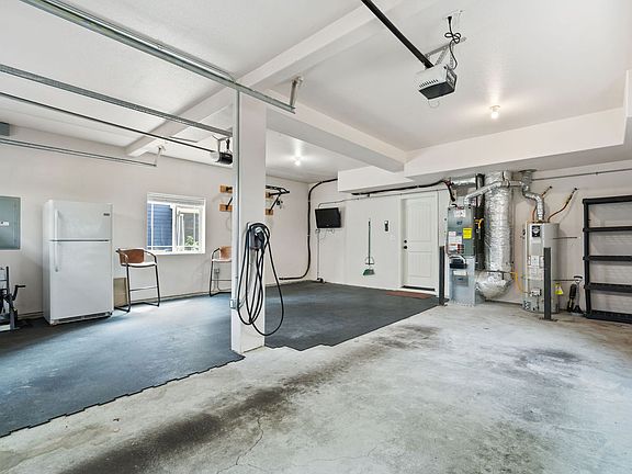 - 2 car garage, with automatic openers, one garage converted to a work out space with rubber mats