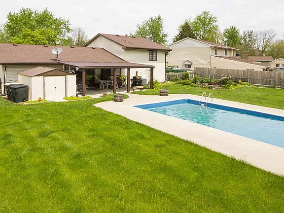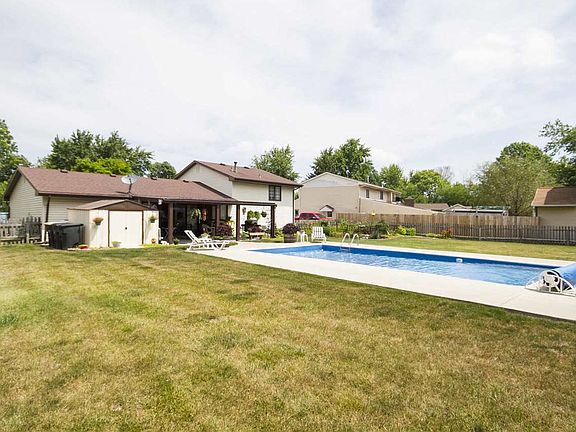 Impeccably maintained home with INGROUND POOL and large yard for entertainment! Pool was COMPLETELY redone in 2001 - NEW Concrete Pool & Patio Around it and also has NEWER Liner & Safety Cover in '15. Backyard features 2 sheds and 1 has electricity. Move-in and enjoy this updated home including: NEWER Furnace, AC, Water Heater, Siding, Patio & Awning, Breaker Box, The kitchen has good storage and features Corian Countertops, Refaced Cabinets, and the Kitchen Appliances stay. Enjoy Living Room on main floor and family room and rec room on lower level. With warm weather coming soon you can get settled and enjoy many fun days in the pool and family gatherings in the backyard! This home truly shows owner pride!