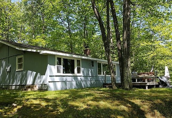 You are not going to find a better waterfront deal than this one! Enjoy incredible lake views from this well-maintained, affordably priced 1BR (add'l BR in guesthouse), 1BA cottage on 1.2 nicely wooded acres. Cottage features a wood burning fireplace for comfortable heat, walk-in closet for storage, large picture windows from both living room and bedroom overlooking the lake, tongue and groove throughout, and spacious deck for relaxing and entertaining. Need more room? Your guests will enjoy the roomy bunkhouse featuring a spacious living room, full bedroom, and partial bath w/chemical toilet. Nearly all furniture, cookware, dishes, linens are included, so ready for you to move right in! Lake Ellwood is a 132-acre full rec clear lake great for water sports -- fish, swim, ski, or boat. Located within walking distance to the Spread Eagle Barrens State Natural Area. You'll want to check this one out soon!