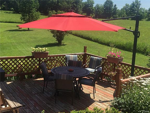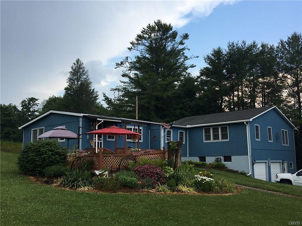 Looking for a peaceful, quiet country setting? You have to see this 4 bedroom, 2 full bath ranch-style home, set on roughly 2 acres with a private pond and surrounding beautiful perennial gardens! Plenty of updated living space is included here with an eat-in kitchen w/ maple cabinetry, dining room, family room/den, large living room w/ hardwood floor, and a home office just inside the side entry (hint: thinking of working from home?). Storage won't be a problem with a full wall of pantry cabinets in the kitchen, walk-in closet in the master bedroom and a full wall of closet space in each of the other bedrooms, even the 2-car garage below includes additional space for storage! A barn/workshop and addition storage shed outside add to the options. With a front porch, deck, and adjacent patio with gazebo, the opportunities to relax outside are just out your front door. There's even a fenced-in area with doggie-door for your pets!