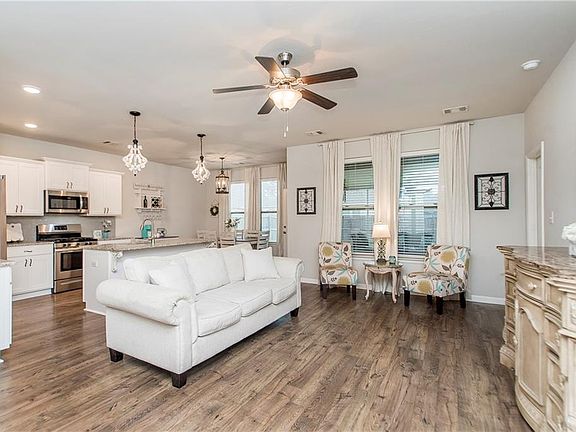 This beautiful 3 bed 2 bath open floor plan has been impeccably maintained & filled with stylish details. The kitchen features granite countertops, stainless appliances including a gas stove, & stylish lighting & hardware. The primary suite features hard surface flooring & primary bath includes dual vanities, soaking tub, separate shower, and huge walk in closet. Relax on the extended screened in back patio The home is situated close to neighborhood pool, playground, near greenspace for endless outdoor fun.