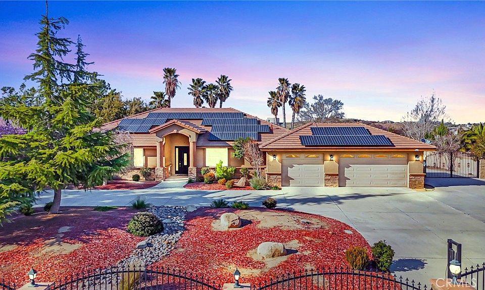 Welcome Home to this Extraordinary One-Story Custom-Built Masterpiece with Paid Off Solar! This Gorgeous Home is Situated on a Spacious 1.37-Acre Lot Featuring 4 Bedrooms and 3 Bathrooms. As you Enter, You'll be Greeted by an Oversized Formal Living Room with Large Picture Windows that Look Out to the Exquisite Backyard Oasis View!! Throughout, You'll Find Shutters, and New Custom Paint! A Separate Space with a Large Open Kitchen with an Oversized Island and Brand-New Appliances, Family Room with a Cozy Fireplace Perfect for Hosting Gatherings and Entertaining Guests. The Master Bedroom is a True Retreat with an Oversized Walk-In Closet, a Cozy Fireplace, and a Lavish Master Bath Suite Featuring a Soaking Tub, Walk-In Shower, His and Her Sinks, and a Separate Vanity. Step Into Your Very Own Backyard Oasis, where You'll Discover a Lighted, Oversized Built-In Cabana and a BBQ Bar/Island Complete with a Beer Tap, Making Outdoor Entertaining a Breeze. This Outdoor Haven Offers Full Electric and Gas Amenities, Providing Everything You Need Right at Your Fingertips. The Oversized Built-In Pool & Spa area is Perfect for Both Relaxation and Fun, Featuring Brand-New Child-Safe Metal Fencing, a Thrilling Rockslide, Multiple Breathtaking Waterfalls, and a Private Oversized LED-Lit Pool Grotto. As the Sun Sets, Un-Wind by the Serene Poolside and Gas Fire Pit Ambiance, Enjoying the Tranquility and Privacy that this Impeccable Property Offers. You'll also Find the 3-Car Garage/Man Cave with Red Cabinets and a Roundabout Driveway with Two Electric Gates! Remarkable Dwelling Offers a Blend of Comfort, Sophistication, and Entertainment Exceptional Dwelling that Truly has it All. Schedule Your Private Showing Today!
