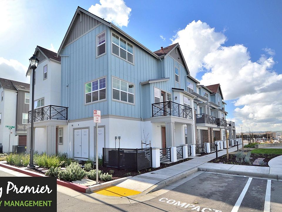 Stunning Luxury Townhome that s completely upgraded with approx. 2,002 sqft of living space, 3 bedroom suites all with their own bathrooms (3.5 bathrooms) and a 2 car side by side attached garage. 1 Full Bedroom and Bathroom on the first floor. Premium End Unit home with additional windows on the side making this home extra bright! Oversized 2 car garage with additional storage area. Open island kitchen design with high end stainless steel KitchenAid appliances, Gas Range Cooktop, large farmhouse style sink, large pantry, granite counter tops, private balcony off the dining area to bbq. Large Master Bedroom with his and her closets with oversized stall shower. Home has Smart NEST thermostat, high ceilings, designer blinds, recessed LED lighting, hot water recirculation pump button, 1st floor bathroom extra wide shower door to be ADA compliant and much more! Right in front of a grass common area and a brand new park and elementary school will be built near property. Refrigerator and Full Size Washer and Dryer included. Can come semi furnished with living room couch set, dining table and luxurious organic cotton master bed mattress with individual automatic bed adjustment features. Family friendly right next to Fallon Sports Park and just around the corner from Kolb elementary! Extremely convenient location near 580, BART, Whole Foods, Chipotle, Target, Nordstroms, San Francisco Premium Outlets, BJ's, Starbucks, Petes, Safeway, Lowes, Buffalo Wild Wings, hacienda regal IMAX movie theater, Trader Joes, 99 ranch and much more! Water and Trash included. No Smoking in the home. No Section 8 Water and Trash included in rent! No Smoking in the home. No Section 8