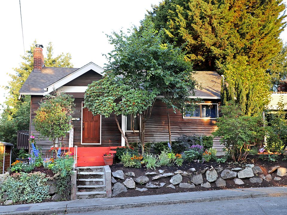 Classic Fremont bungalow on a charming dead end street with majestic views of the Olympic mountains and Ballard bridge. Enjoy a quiet, tree-house atmosphere just a short walk to Fremont shops, the zoo, and Green Lake. Deep, fully fenced, terraced back yard. Established cherry and apple trees, year-round flowers, and perennial garden. Updates since 2014 include HE appliances (washer, dryer, dishwasher), new electric throughout, terracing, landscaping, bedroom remodel, new furnace, and more. Viking range, and original 1926 fireplace. Walk-out basement has bright sunlight and full height ceilings, ready for additional finishing. House is wonderful as is, and also has outstanding potential for development. We are sad to leave!