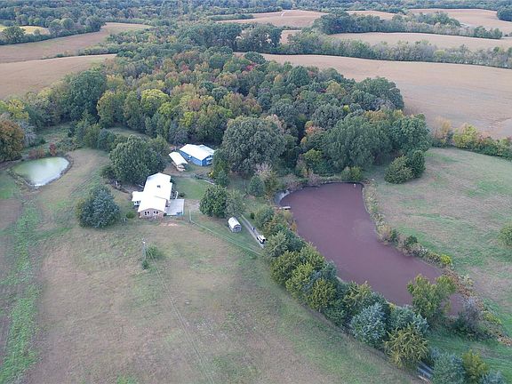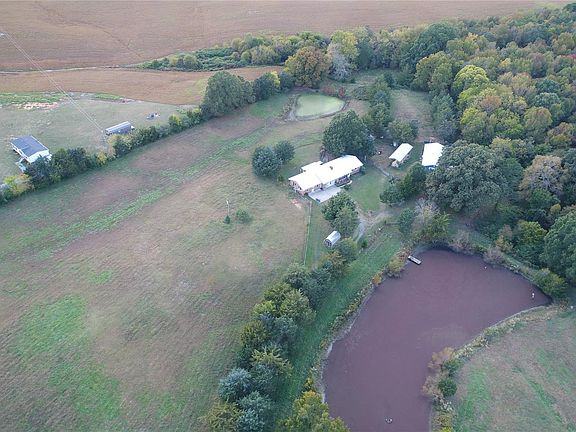 Home on 21 +/- Acres ready for your horses or mini farm! Property is fenced with multiple Pastures. Two Ponds. A long tree lined gravel driveway brings you to this all Brick Home with 3 beds 2 Baths. Hardwood floors through majority of home. Living room has real wood fireplace. Home has basement area that is unfinished, but has wood burning fireplace. Attached 2 car garage (see agent notes) Addition to home created an office space and additional living room area. Large 25x55 foot Workshop with separate power meter! Large covered shelter with expanded height for camper. 8 x 12 storage building. Two horse paddocks. Multiple gates and separated pastures. Property Sold AS-IS.
