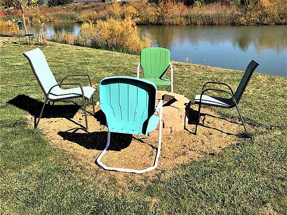 WATERSIDE LOCATION in Marion's Heritage at University Village. This inviting and well-maintained BRADFORD model home includes 3 bedrooms and 2 bathrooms in 1,769 sf. Lots of upgrades here. Open floor plan from kitchen to living room boasts 14 ft vaulted ceilings and a beautiful archway with planter shelf. Spacious kitchen with island with 3 bar stools, pantry, and beautiful clove-colored cabinets. Front dining room/home office/family room. Separate master suite features vaulted ceilings, a large garden tub, linen closet and extra large walk in closet. NEWER on-trend flooring, paint, kitchen back-splash, ring doorbell, garage camera, fire-pit and partial privacy fence around patio. Laundry/mudroom off insulated and finished 2-car garage with attic storage and pull down ladder. 12'6x17 back patio with water view. Stainless steel appliances included. HOA is $300 semi-annually. Water/sewer/trash is $60 monthly. All electric budget of $135 monthly. Community amenities include a swimming pool, basketball court, lake, and picnic tables in the commons area, and sidewalks throughout neighborhood. Immediate possession.