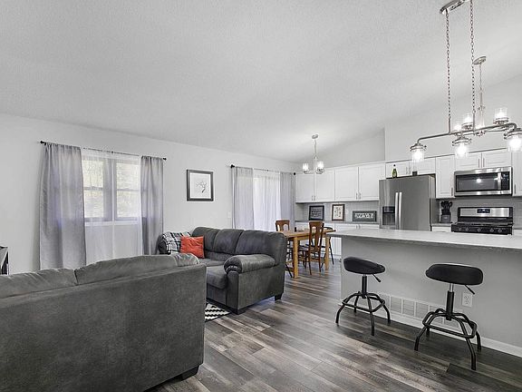 Easy living in this low maintenance 2 bedroom, 2 bath townhome. Nice updates through out. Enjoy luxury vinyl plank through foyer and main living area, new white kitchen cabinets and laminate counters, newer stainless appliances, tiled backsplash and updated light fixtures. Upstairs you will find 2 spacious bedrooms and a full bath. In the lower level, a cozy rec room or could be non conforming 3rd bedroom. One car attached garage with private access to the home. Deck off the slider is recently refinished. Access to the pool and other amenities within this neighborhood.