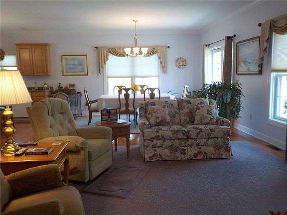 Meticulously maintained ranch in the town of Geneva with public water & sewer. The rooms are spacious and bright. This home features an open concept floor plan in the living area of the home with the added touch of crown molding. The gleaming hardwood floors are a testament to the owners loving care. The master bedroom features a tray ceiling, walk in closet + a full bath w/ jet tub and separate shower. The laundry room is conveniently located off the kitchen w/ newer washer & dryer. The basement is full and ready for your finishing ideas ! The low maintenance deck has a remote awning and over looks the back lawn.