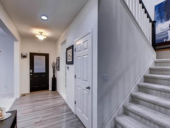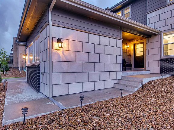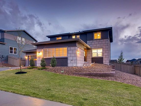 Highly Upgraded Contemporary Home with One of a Kind Backyard! The modern exterior of this home is spectacularly unique. The family room is oversized with big picture windows that stream in natural light. The truly gourmet kitchen has slab granite counters, huge Entertainer's Island, custom backsplash, farmhouse sink, upgraded cabinetry, stainless appliances with gas stove and double ovens, and coffee bar. There's also an elegant formal dining room and private study with French doors. Upstairs the master suite is very luxurious with dramatic coffered ceiling, views, and highly upgraded en-suite bath with dual split Quartz vanity, soaking tub, and custom closet. There are also two additional spacious bedrooms and a fantastic loft space. Don't miss the amazing backyard with custom stamped concrete patio, gas firepit, and playground space. This is Castle Rock's best location... 5 minutes from big city amenities but quiet and well kept enough to still feel like a small town. Visit today!